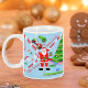 Santa couldn't wait! He opened an early gift—a golf gadget for his game. Now, our delightful Christmas golf pattern is perfect for die-hard golfers. Enjoy your favourite holiday beverage in this mug and make a hole-in-one with Santa's putting skills by the tree, bringing festive joy to this unique design. Happy holidays!