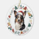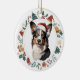Here's a cute personalised ornament for anyone who loves a little Cardigan Welsh Corgi Dog. The front has a watercolor Corgi wearing a Santa hat. The image is framed within a colourful circle wreath made up of various Holiday images, including a snowman, bells, candy cane, stocking, holly, and more! The back of the ornament has the same wreath image with your custom text in green and red.
