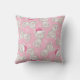 This pillow features a soft repeating pattern of cats in Santa hats with simple snowflakes on a pastel pink background. A cute seasonal accent for your holiday decorating.