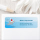 Return Address Label with a cute shark wearing a Santa hat on a blue background. This Christmas label includes templates for your name and address.