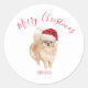 Santa Hat Dog Pomeranian Merry Christmas Classic Round Sticker
