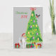 Santa Hat Fox Terrier Dog and Christmas Tree Holiday Card