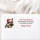 A beautiful German Shepherd Dog wearing a red and white Santa Claus hat is at the left on these return address labels. Your custom text is in red and black at the right. There's also an extra text field for your seasonal greeting in red.