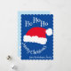 Santa Hat Ho Ho Ho Merry Christmas Blue White Holiday Card