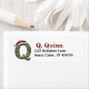 Add a festive touch to your holiday mail with these personalised return address labels! Each label features a playful cartoon filigree monogram "Q" adorned with a Santa hat, alongside your address details. Customised with the year, these labels bring a bit of seasonal charm to every envelope you send. Perfect for holiday cards, party invitations, or seasonal greetings, these labels add a cheerful, personal detail that friends and family will love. Let your holiday spirit shine from the first glance of your mail with these delightful, custom-designed address labels!