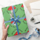 A pattern of red Santa hat mushrooms with a custom festive message.