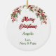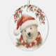 On the front of this Holiday ornament is the image of an adorable white polar bear wearing a red and white Santa Claus hat and a neck scarf. At the top is a half wreath of holly leaves with red berries. On the back, red text says MERRY CHRISTMAS", and there are additional text fields for you to personalise the ornament. Cute for a daughter, granddaughter, son or grandson.