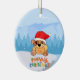 Santa Hat Puppy Snow Christmas Ceramic Ornament