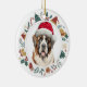Here's a cute personalised ornament for anyone who loves a majestic Saint Bernard Dog. The front has a watercolor Saint wearing a Santa hat. The image is framed within a colourful circle wreath made up of various Holiday images, including a snowman, bells, candy cane, stocking, holly, and more! The back of the ornament has the same wreath image with your custom text in green and red.
