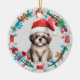 Santa Hat Shih Tzu Puppy Bone Wreath Ceramic Tree Decoration