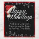 Christmas wine bottle labels with red Santa hat and Happy Holiday script on an elegant red and white snowflake background. You can easily customise these corporate Christmas wine bottle labels and personal custom Christmas wine bottle labels by simply adding your text and logo. You can also change the background colour.