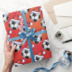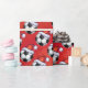 Santa Hat Soccer Ball Pattern on Red Wrapping Paper