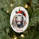 Santa Hat White Horse Christmas Ceramic Tree Decoration
