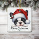 Santa Hat Winking French Bulldog Puppy Christmas Ceramic Ornament