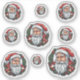 Sticker with the head of Santa Claus and a beautiful Christmas wreath. Digitally created, in colorful cartoon style.