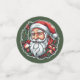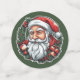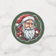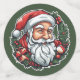 Sticker with the head of Santa Claus and a beautiful Christmas wreath. Digitally created in colorful cartoon style.