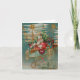 Here comes Santa! He is steering his amazing flying machine through the night sky. Stars, streamers and fancy decorations bedeck the aircraft and its load of wonderful toys for Christmas morning. The restored image of a Victorian postcard features a frosty background, gold accents and beautiful, bright colours. It is framed in icicles and ornaments with a Christmas village in the background.