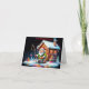 Santa holding fishing pole by shack christmas holiday card