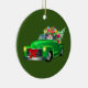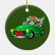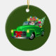 Santa in Green Pickup Truck Ceramic Ornament