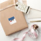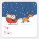 This sticker features a reindeer pulling Santa Claus in his sleigh in the snow and the text "to" and "from" to be used as a gift tag.