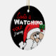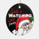 Santa is Watching You Ornament. ⭐ 99% of my designs in my store are done in layers. This makes it easy for you to resize and move the graphics and text around so that it will fit each product perfectly. ⭐ (Please be sure to resize or move graphics if needed before ordering) You can also "TRANSFER DESIGN" on other Zazzle products and adjust the design to fit most of Zazzle items. (button is down on the right side of the page) Some of the text graphics have ready to fill in the box(es) or you can Click on the "CUSTOMIZE" button to add, move, delete, resize, background colour or change any of the font or graphics. The design is made with high resolution vector and/or digital graphics for a professional print. ⭐NOTE: (THIS IS A PRINT. All zazzle product designs are "prints" unless otherwise stated under "About This Product" area) The design will be printed EXACTLY like you see it on the screen and on the product...so please make sure when you do your changes on the resizing of any of the graphics or text that it fits in the areas correctly and that your spelling and wording is how you like it to be in size, colour and font. If you have any questions about the "DESIGN" or need help please contact me at siggyscott@comcast.net or visit my store link: http://www.zazzle.com/store/designsbydonnasiggy (Copy and Paste) I'll be happy to help. ⭐ All other questions (shipping, refund, the printing, the product, etc...) please contact Zazzle or the Maker ⭐DIRECTLY⭐. Thank you for the support and stopping by my store - DesignsbyDonnaSiggy. © Donna Siegrist