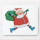 Cute and colourfull Santa jumping for joy with his big bag of presents. Lots of bright colours for the festive season. Design may be made bigger or smaller. Wording may also be added on any part of the design.