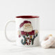 Santa Joy greeting cards, mousepads, mugs, tote bags, holiday T-shirts, and other items featuring Santa Clause with a string of coloured lights and colourful stripes and stars text that reads "Joy".