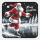 Santa Joyfully Ice Skating for Holidays Square Sticker