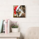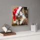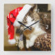 Holiday Wall Clock - Baby, a Siamese cat is wondering why she is wearing a Santa Hat. She isn't sure what to think. This is a photo that has been turned into a painting.