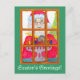 A cute whimsical picture of Santa lighting the menorah candles adorns this postcard.