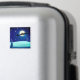 This magnet has an artsy picture of Santa flying through the sky with his reindeer.