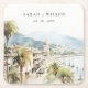 Santa Marta Colombia Watercolor Landscape Wedding Square Paper Coaster