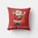 Santa Merry Christmas Cute Cartoon Pillow. Wish everyone a Merry Christmas this holiday season with this cute, smiling, waving, cartoon Santa.
