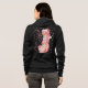 Vibrant pink-haired anime girl in a snowy Santa hat bikini amid heart motifs; glossy shading and fur trim craft a playful, festive look for holiday apparel.