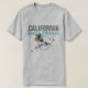 Modern word art features California in distressed grey font with Santa Monica in a modern aqua script font with geometric palms and mountains logo style graphic