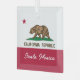 Santa Monica California Republic flag Christmas Ornament from glass. Personalize with custom text or city name like Los Angeles, San Diego, San Jose, San Francisco, Fresno, Sacramento, Long Beach, Oakland, Bakersfield or Anaheim. Square shape.