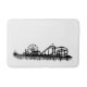 Bath mat design features an original marker illustration of the Santa Monica Pier in Santa Monica, California.