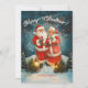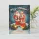 Santa just got back from delivering all those presents throughout the world and is relaxing with the Mrs with a little Christmas Eve glass. They wish you a very "Merry Christmas" as we do, too! This is a cute and fun vintage watercolor design for your happiness at the Yuletide. On the back of this flat holiday card are suggested sentiments that you can change or keep. On the front and back are example "from" names and year: Be sure to edit to your own choices.