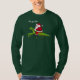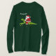 This funny Christmas long sleeved t-shirt features Santa Claus riding a large green praying mantis while he says "Ho Ho Ho!" A quirky holiday shirt for people who appreciate the weirder things in life.