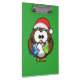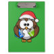 SANTA CLAUS OWL WEARING RED HAT AND HOLDING CHRISTMAS GIFTS