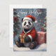 Adorable Santa Panda Bear and a snow scene in the background. Easily personalise the text
