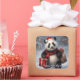 Adorable Santa Panda Bear and a snow village in the background. Easily personalise the text