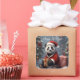 Adorable Santa Panda Bear and a snowy scene in the background. Easily personalise the text
