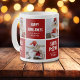Funny Cute Dog Photo Collage Christmas Mug Gift. Design features 5 pictures of your choice, fun festive dog pun sayings 'Happy Howl-idays, Santa Paws, Jingle Paws and Santa's little Yelper! A snow overlay over the photographs to give it a wintery feel and Personalise with family and dog name.