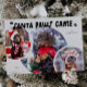 Minimal and modern holiday photo template card featuring 3 photos of your pup on the front with a fun typography text that says "santa paws came." You can also add another picture and message on the back. The background is white.