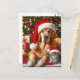 Santa Pets Golden Retriever and Kitten Christmas Postcard