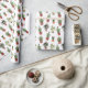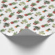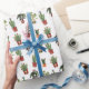 Pattern with illustrations of potted plants including aloe, cactus, and palm decorated with Christmas decorations including ornaments, bows, santa hat, and lights, and stars.