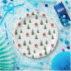 Festive cosy Santa playing hockey among pine trees. Perfect for adding a playful holiday touch to any room during the Christmas season.