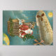 Santa's coming in his hot air balloon. This vintage Christmas print depicts Santa in a hot air balloon with a bunch of presents and a Christmas tree.