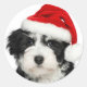 Spread some Christmas cheer and celebrate the festive season with this adorable pet round sticker, featuring a cute black and white Bichon Havanese puppy dog wearing a red Santa Hat on white background. It is an easy way to liven up the envelopes of your Christmas cards, but also a beautiful finishing touch for your Christmas gifts.